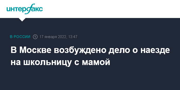 В Москве возбуждено дело о наезде на школьницу с мамой