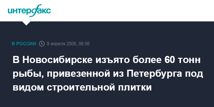 Новосибирск. 9 апреля. ИНТЕРФАКС-СИБИРЬ - Инспекторы Управления Россельхознадзора по Новосибирской области выявили крупную партию рыбы и рыбопродуктов, ввезенную в регион под видом стройматериалов.