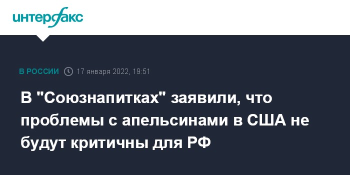 Москва. 17 января. INTERFAX.RU - Проблемы производителей апельсинов в США, приведшие к резкому росту фьючерсов на концентрат апельсинового сока, не будут критичны для российского рынка, считает президент Союза производителей соков, воды и напитков (Союзнапитки) Максим Новиков.