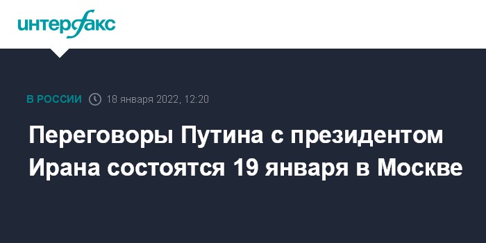 Москва. 18 января. INTERFAX.RU - Переговоры президента РФ Владимира Путина с президентом Ирана Сейедом Ибрахимом Раиси пройдут в Москве в среду, 19 января, сообщила пресс-служба Кремля.
