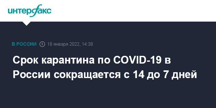 "Как и в других странах, мы оптимизируем подходы к карантину и лабораторному исследованию граждан, в том числе сокращаем сроки карантина до 7 дней", - сказала Голикова на координационном совете при правительстве РФ по борьбе с COVID-19.
