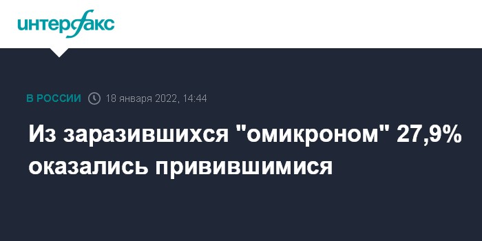 Из заразившихся "омикроном" 27,9% оказались привившимися