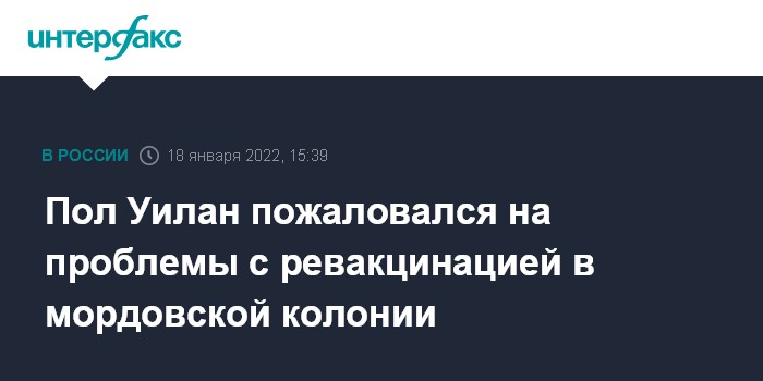 Пол Уилан пожаловался на проблемы с ревакцинацией в мордовской колонии