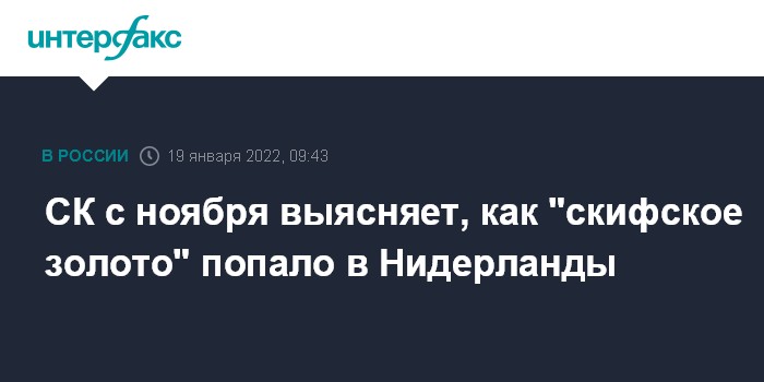 СК с ноября выясняет, как "скифское золото" попало в Нидерланды