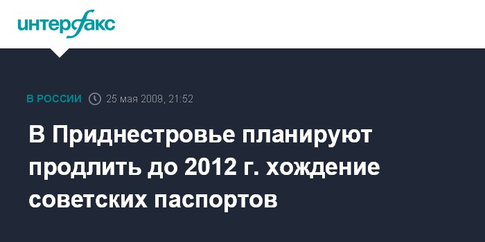 Тирасполь. 25 мая. INTERFAX.RU - Приднестровские парламентарии 17 июня рассмотрят вопрос о продление еще на два года срока действия советских паспортов на территории Приднестровья в качестве внутренних документов непризнанной Приднестровской Молдавской Республики (ПМР).