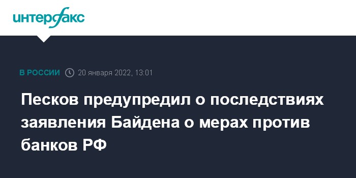 Песков предупредил о последствиях заявления Байдена о мерах против банков РФ