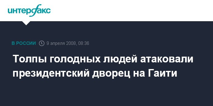 Нью-Йорк. 9 апреля. INTERFAX.RU - Десятки тысяч голодных людей попыталась во вторник по местному времени взять штурмом президентский дворец в столице Гаити Порт-о-Пренсе, сообщает в среду американская телекомпания СNN.