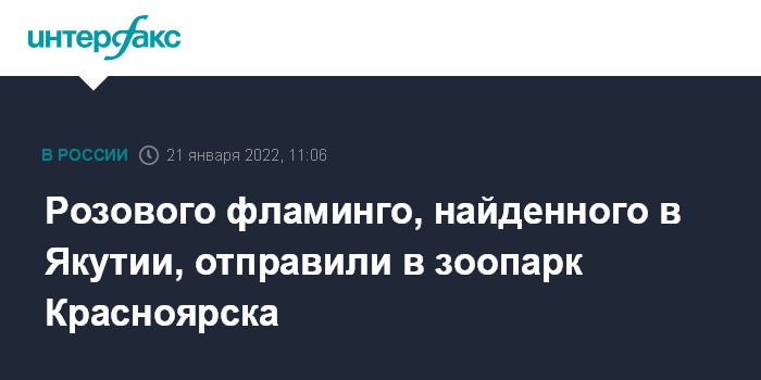 Москва. 21 января. INTERFAX.RU - Розового фламинго Гришу, которого обнаружили осенью прошлого года на Чаяндинском месторождении в Якутии, доставили авиарейсом в Красноярск и разместили в местном зоопарке "Роев ручей".