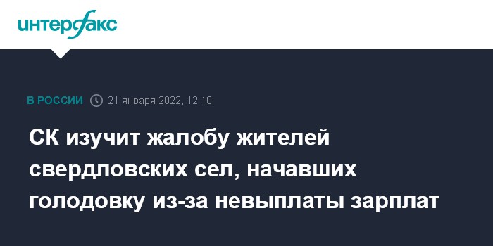 Ранее СМИ сообщили, что жители сел Сарсы-1 и Сарсы-2 из Красноуфимского района Свердловской области объявили голодовку в связи с невыплатой зарплаты на сельхозпредприятии ООО "Лотас" и были намерены обратиться к руководству СКР.