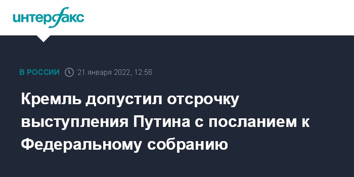 Кремль допустил отсрочку выступления Путина с посланием к Федеральному собранию