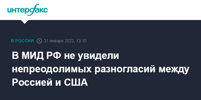 В МИД РФ не увидели непреодолимых разногласий между Россией и США
