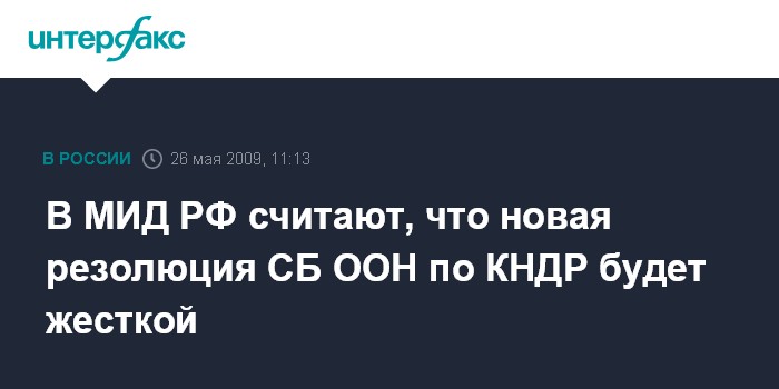 Москва. 26 мая. INTERFAX.RU - Жесткая резолюция СБ ООН по КНДР неизбежна, но в Москве выступают против блокады и изоляции Пхеньяна. Как сообщил "Интерфаксу" источник в МИД РФ, скорее всего, принятие жесткой резолюции СБ ООН неизбежно, так как речь идет об авторитете Совета Безопасности.