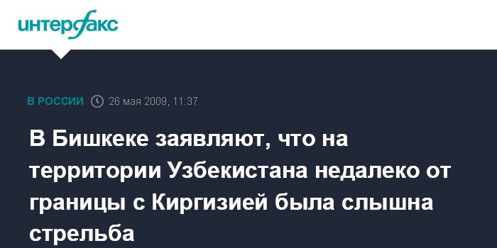 Москва. 26 мая. INTERFAX.RU - По предварительным данным МВД Киргизии, в ночь на вторник в районе киргизско-узбекской границы на территории Узбекистана произошла перестрелка. В настоящее время выясняются подробности произошедшего.