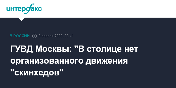 Москва. 9 апреля. INTERFAX.RU - В ГУВД столицы считают, что в Москве так называемые "скинхеды" в организованное движение не объединены.