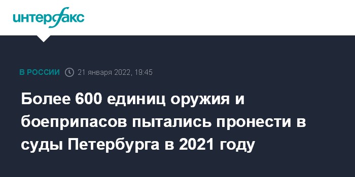 Более 600 единиц оружия и боеприпасов пытались пронести в суды Петербурга в 2021 году