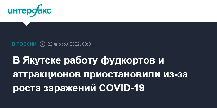 Как сообщалось, из-за ухудшения эпидситуации до 31 января закрылись музеи Якутска. Кроме того, сокращена до 50% заполняемость кинотеатров. Ранее до 1 февраля были приостановлены показы всех спектаклей, концертные программы, другие культурные мероприятия.