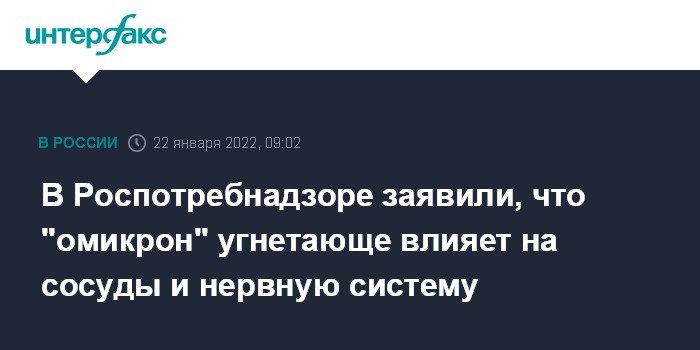 "Я бы не торопилась делать заключение о потере вирусом (с приходом нового "омикрон"-штамма - ИФ) поражающих свойств. Выраженная слабость и сильные головные боли указывают на то, что возбудитель угнетающе действует на сосуды, нервную систему, что предстоит изучить. Высыпания, которые были впервые отмечены британскими врачами у детей, тоже наводят на мысли о возможном поражении сосудистой системы", - сказала Руженцова в интервью "Российской газете".