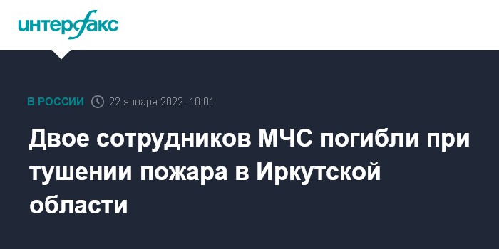 Москва. 22 января. INTERFAX.RU - Двое пожарных погибли при тушении огня в жилом доме в городе Бодайбо Иркутской области, сообщает в субботу пресс-служба ГУ МЧС по региону на своей странице в инстаграме.