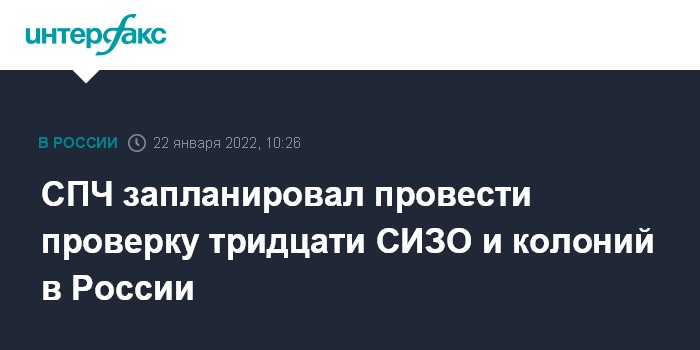 Москва. 22 января. INTERFAX.RU - Члены Совета при президенте РФ по развитию гражданского общества и правам человека (СПЧ) рассчитывают провести проверку 30 исправительных учреждений - колоний и СИЗО - в нескольких регионах страны, сообщил "Интерфаксу" в субботу член СПЧ Андрей Бабушкин.