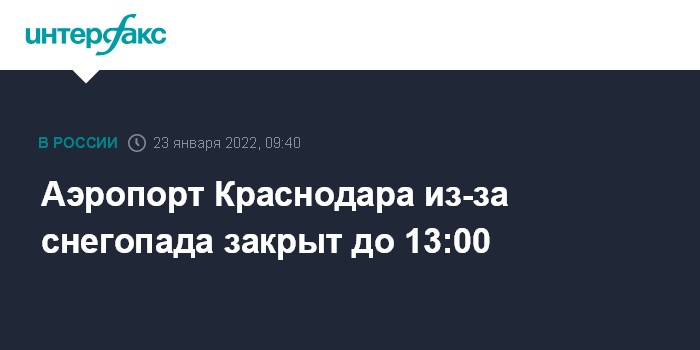 "Ливневый снегопад усилился с полуночи и продолжается до настоящего времени. Аэропорт Краснодара приостановил обслуживание рейсов до 13:00 по московскому 23 января, в связи с обработкой аэродрома и недостаточным коэффициентом сцепления для безопасного выполнения полетов", - говорится в сообщении.