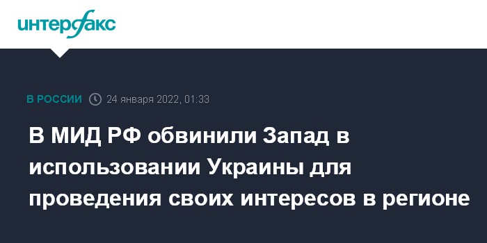Москва. 24 января. INTERFAX.RU - Западные государства используют Украину в качестве инструмента воздействия на Россию и проведения своих интересов в регионе, заявила официальный представитель министерства иностранных дел (МИД) РФ Мария Захарова.