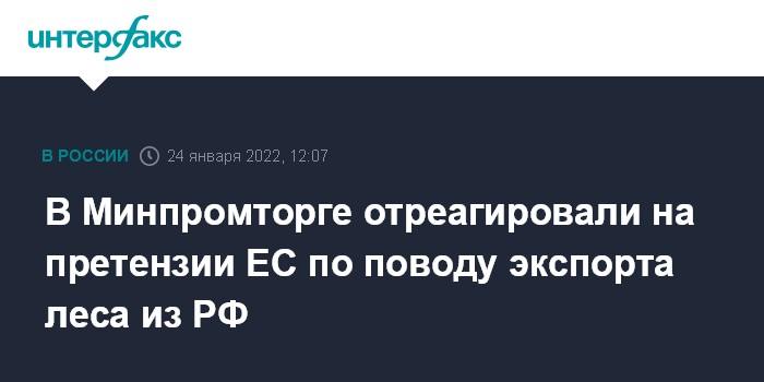 Москва. 24 января. INTERFAX.RU - Россия не вводила полный запрет на вывоз древесины, ограничения направлены на обеление отрасли и развитие переработки, а сокращение пунктов пропуска вывоза пиломатериалов необходимо для проведения модернизации, прокомментировали "Интерфаксу" в Минпромторге претензии со стороны Евросоюза, на прошлой неделе запросившего в ВТО консультации по поводу введенных РФ с 1 января 2022 года мер по ограничению экспорта леса.