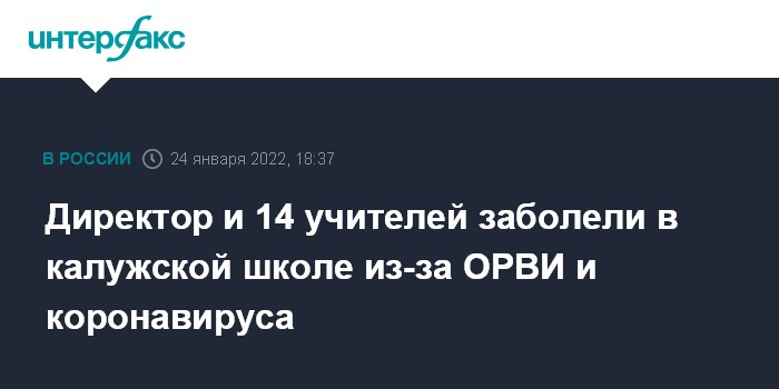 Москва. 24 января. INTERFAX.RU - Значительная часть учителей в Калуге не вышла в понедельник на работу в связи с ростом заболеваемости ОРВИ и коронавирусом, сообщила пресс-служба городской управы.