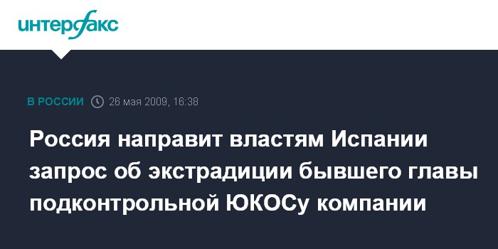 Россия направит властям Испании запрос об экстрадиции бывшего главы подконтрольной ЮКОСу компании