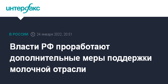 Власти РФ проработают дополнительные меры поддержки молочной отрасли