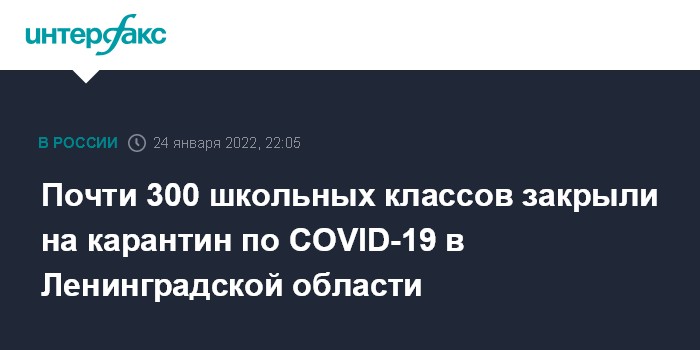 Москва. 24 января. INTERFAX.RU - Резкий рост COVID-19 отмечается в Ленинградской области, 290 школьных классов закрыто на карантин, сообщил губернатор региона Александр Дрозденко в понедельник в прямом эфире на телеканале "Россия-24".