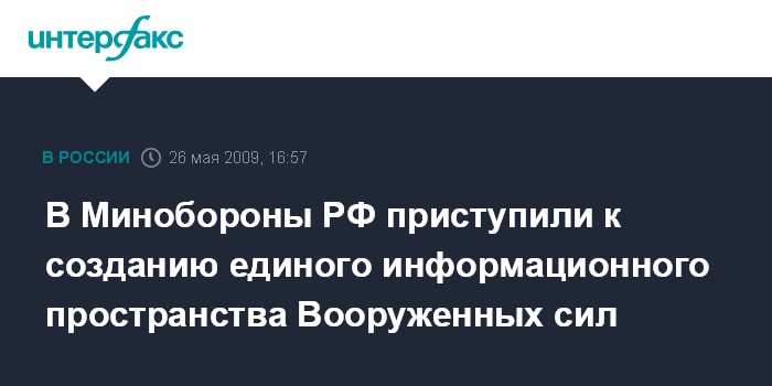 Москва. 26 мая. INTERFAX.RU - Минобороны РФ приступило к реализации концепции создания единого информационного пространства Вооруженных сил на основе глобальной информационной сети, сообщил журналистам во вторник начальник Связи ВС - заместитель начальника Генштаба ВС РФ генерал-лейтенант Евгений Мейчик.