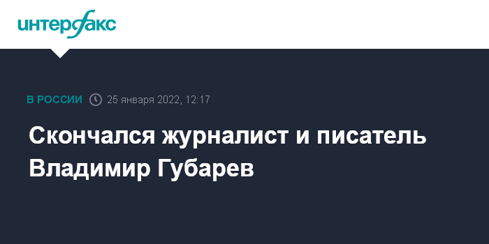 "Умер наш коллега, известный журналист, писатель и драматург Владимир Степанович Губарев. Союз журналистов России выражает глубокие соболезнования родным, близким и коллегам Владимира Губарева", - говорится в сообщении на сайте СЖР.