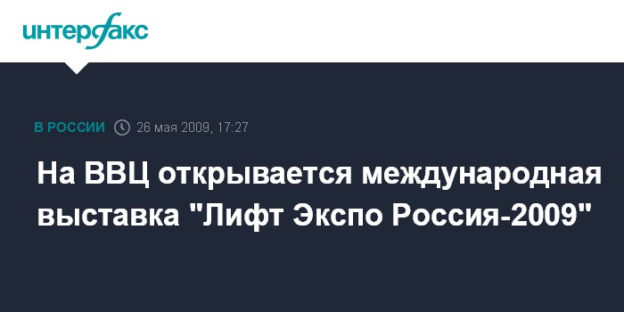 Москва. 26 мая. INTERFAX.RU - На ВВЦ откроется в среду 4-я международная выставка "Лифт Экспо Россия-2009", сообщили "Интерфаксу" во вторник в пресс-службе ОАО "ГАО ВВЦ".