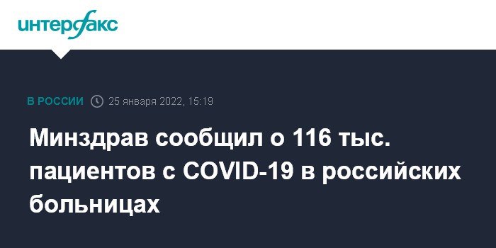 Москва. 25 января. INTERFAX.RU - В российских больницах находится 116 тыс. пациентов с коронавирусом, за прошедшую неделю произошел незначительный рост госпитализаций с COVID-19 в 6,4%, заявил во вторник глава Минздрава РФ Михаил Мурашко.