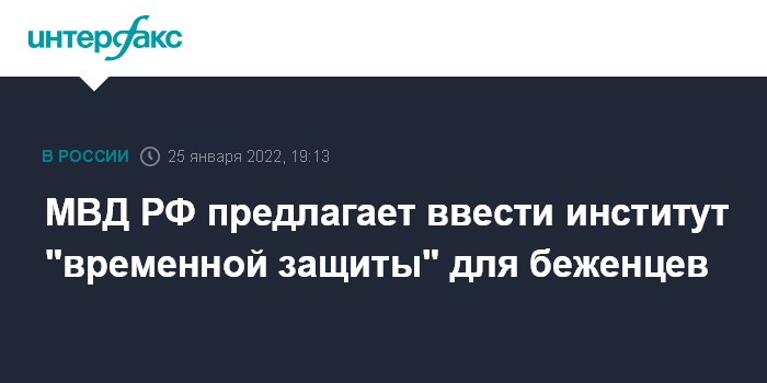 Москва. 25 января. INTERFAX.RU - В МВД России предложили создать новый институт - "временной защиты" - как одного из видов убежища для массово прибывающих в РФ иностранных граждан.