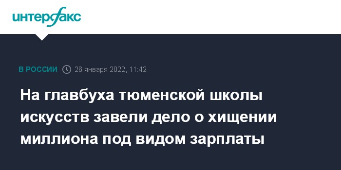 Москва. 26 января. INTERFAX.RU - Материалы прокурорской проверки стали поводом для возбуждения уголовного дела о хищении свыше 1 млн рублей в одной из детских школ искусств в Тюменской области, сообщает в среду пресс-служба областной прокуратуры.