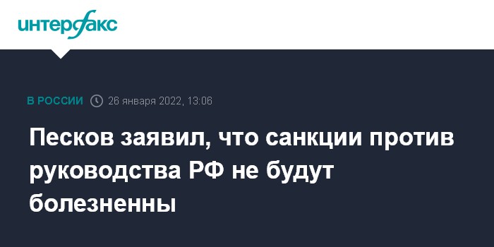 Москва. 26 января. INTERFAX.RU - Возможные санкции США против высшего руководства России не будут болезненны, чиновникам в России уже давно запрещено иметь счета за рубежом, заявил пресс-секретарь президента Дмитрий Песков.