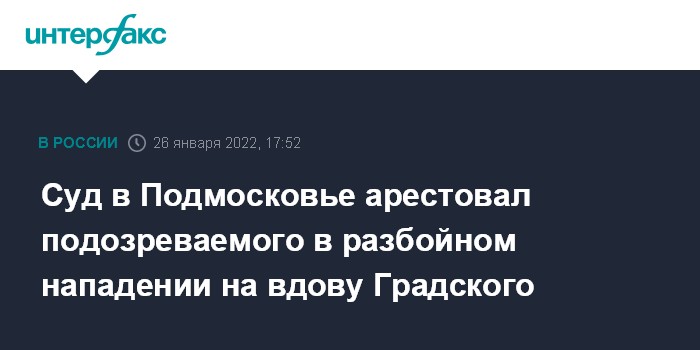 Суд в Подмосковье арестовал подозреваемого в разбойном нападении на вдову Градского