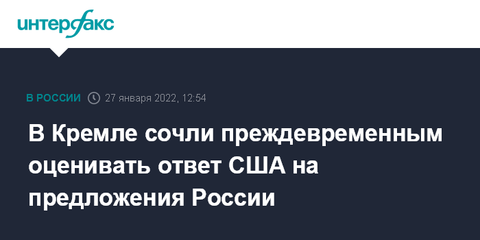 В Кремле сочли преждевременным оценивать ответ США на предложения России