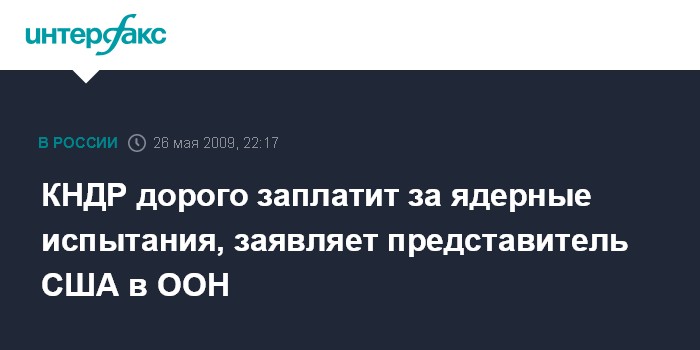 Лондон. 26 мая. ИНТЕРФАКС - Северная Корея дорого заплатит за проведенное на днях ядерное испытание и запуски баллистических ракет, заявила во вторник постоянный представитель США в ООН Сьюзан Райс.