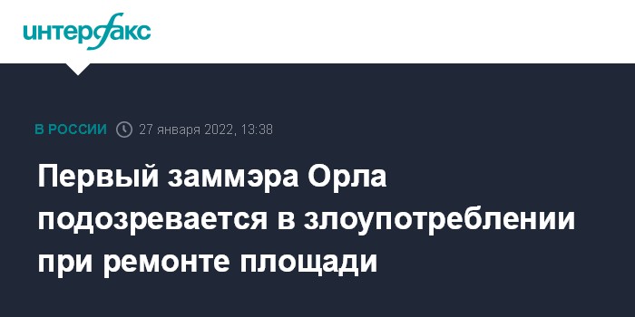 В декабре 2021 года следственные органы возбудили уголовное дело о мошенничестве по факту хищения 15 млн бюджетных рублей, выделенных на ремонт площади Маршала Жукова в Орле. По версии следствия, подрядная организация ООО "Техспецкомплект" подготовила для заказчика расчет на ремонт площади с необоснованно завышенными ценами на стройматериалы. После этого МКУ "Управление коммунальным хозяйством г. Орла" на основании этого расчета перечислило ООО "Техспецкомплект" по муниципальному контракту более 71 млн рублей.