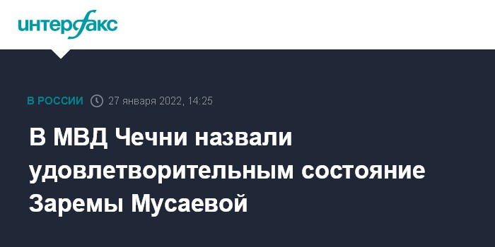 В МВД Чечни назвали удовлетворительным состояние Заремы Мусаевой