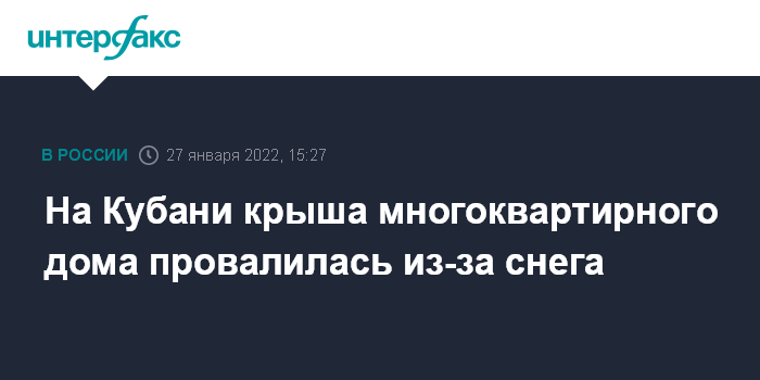На Кубани крыша многоквартирного дома провалилась из-за снега