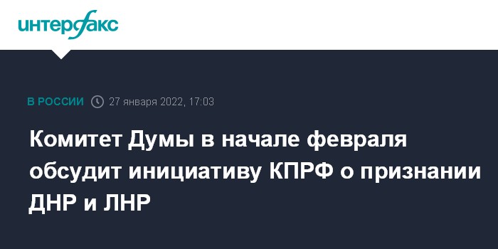 Комитет Думы в начале февраля обсудит инициативу КПРФ о признании ДНР и ЛНР