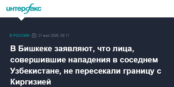 Москва. 27 мая. INTERFAX.RU - Пограничная служба Киргизии опровергает информацию о том, что лица, совершившие нападения в соседнем Узбекистане, проникли в республику с киргизской территории.