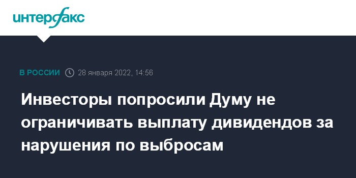 Инвесторы попросили Думу не ограничивать выплату дивидендов за нарушения по выбросам