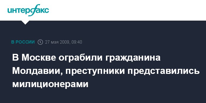 Москва. 27 мая. INTERFAX.RU - В Москве ограблен гражданин Молдавии, сообщил "Интерфаксу" в среду источник в правоохранительных органах.