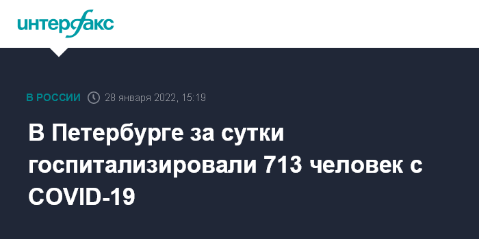 Москва. 28 января. INTERFAX.RU - За минувшие сутки в Петербурге были госпитализированы 713 человек с коронавирусом, говорится в ежедневной эпидемиологической справке пресс-службы администрации губернатора региона. По данным ресурса "СТОПКОРОНАВИРУС.РФ", в больницы попали 693 заразившихся.
