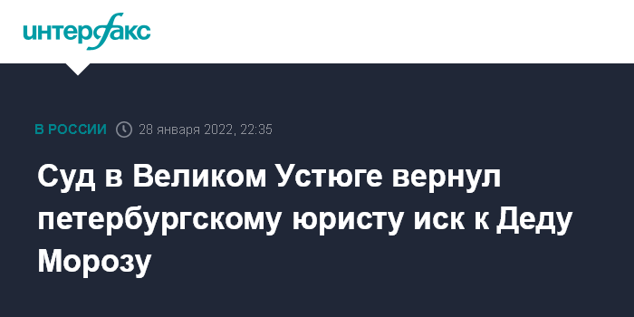 Исковое заявление петербургского юриста к АО "Дед Мороз" было зарегистрировано 24 декабря Великоустюгским районным судом. В нем заявитель потребовал у Деда Мороза 23 подарка, исполнение заветных желаний и компенсацию морального вреда в размере 10 млн рублей. В обоснование заявленных требований истец указал, что ответчик, "который позиционирует себя как главный волшебник страны, с момента образования 16 ноября 1998 года не выполняет публично взятые на себя обязательства, не дарит ему подарки и не исполняет его заветные мечты".