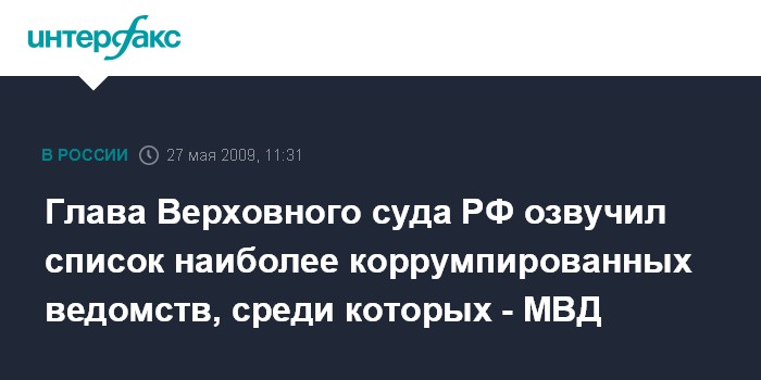 Глава Верховного суда РФ озвучил список наиболее коррумпированных ведомств, среди которых - МВД
